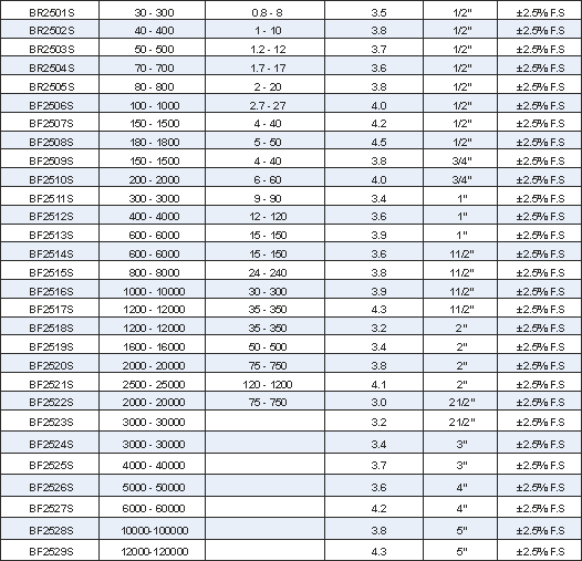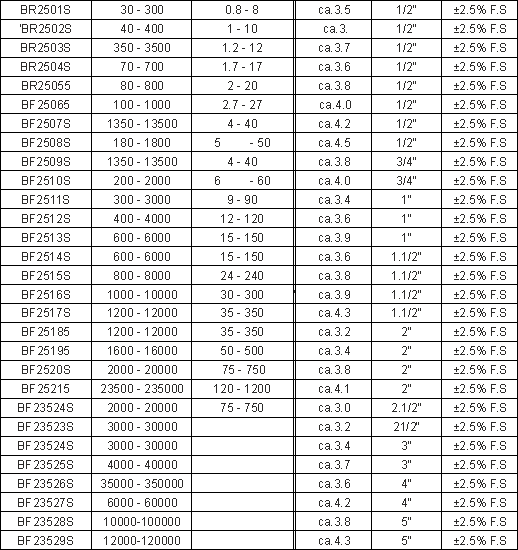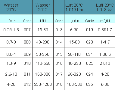 Wasser-0.25 LPM bis zu 20 LPM; 15 LPH bis zu 1200 LPH Luft 6 NLPM bis